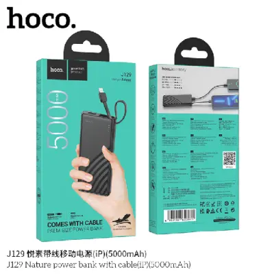 Hoco J129 Nature power bank with cable(USB-C)(5000mAh) (Type-C) Black